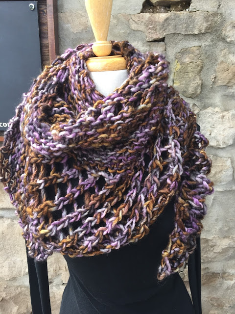 My secret project. I knit Auburn Wave in tosh ASAP on 15mm needles. Yes, there were a few changes to the pattern - minor ones. I eliminated a few rows. My shawl took 2.5 balls. Talk about a quick project. If I had really tried I could have finished it on Sunday. One day for a shawl. Awesome!! I think there could be another one in my future once Camp is finished.