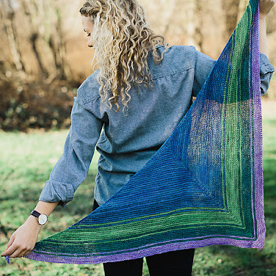 The Reverb Shawl is a super-simple top-down shawl or kerchief knit entirely in garter stitch using our new fingering-weight mini-skeins. This heart-shaped shawl is designed to maximize each colour, as one blends into the other with gradually thinner stripes. Arrange the colours as you like them!