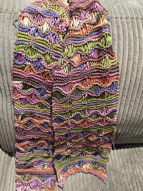 Today was Family Day in Ontario so the store was closed. Most of my day was spent knitting and watching many episodes of NCIS. The scarf could be finished tonight. I had a thought this afternoon that I might join the ends and make it a cowl. We'll see when I get a bit further.