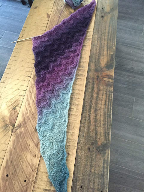 Lynn read through my pattern for the Crazy Magic Boomerang yesterday and commented on how well written it was. It's a great train, bus, March Break project. Take a look in your stash - I have a feeling that you might have a yarn that will work. It doesn't have to be self-striping. Hand dyed yarn will look great too.