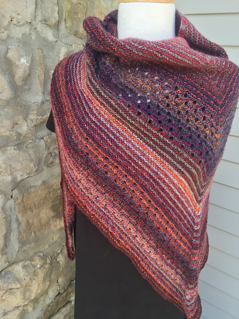 My Meadowside shawl isn't growing so Diana knit us one to hang in the store.
