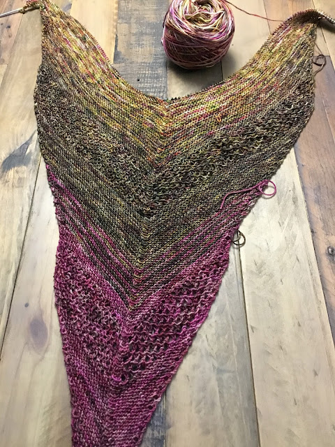 I couldn't help myself. There is another one going in Rockshelter Sock. I thought that I was going to get more knit today but I was busy flipping between the golf and the Daytona 500.