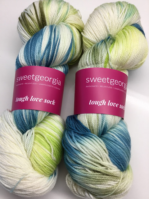 Meet Voyage. This is a new Party of Five kit from SweetGeorgia Yarns. The denims are fabulous. So fabulous that we have the colours in full skeins of Tough Love Sock as well.