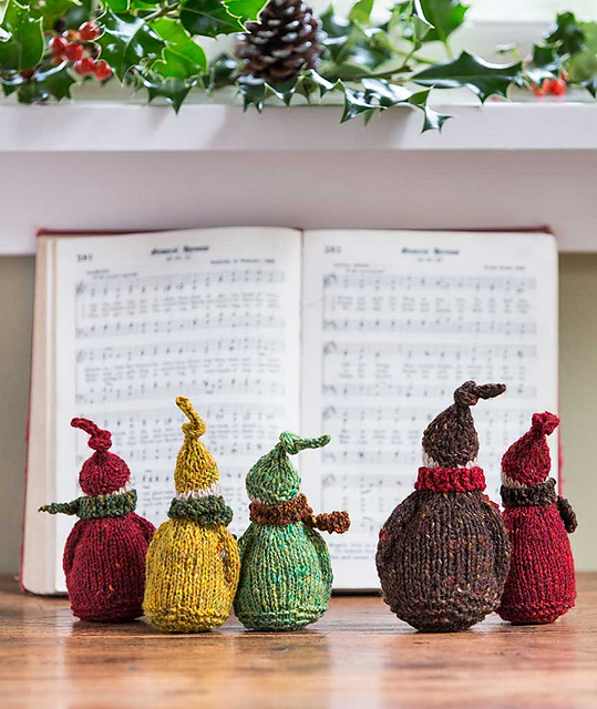 These little handmade pals, created by Jennifer Evans, are perfect on the holiday mantelpiece, tree, or packages. But they’ll celebrate any season cheerfully! Originally designed for fingering-weight yarn, we love them just as much a bit bigger in DK-weight yarn . Once we started knitting them, we just couldn’t stop!