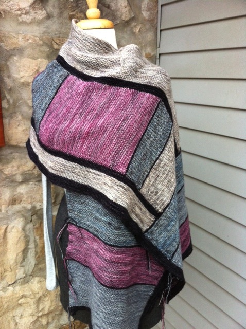 The first side border is done and cast off. The black really sets off the colours.