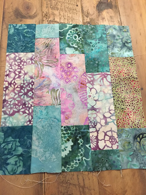 I'm home and have been through all my Kaffe Fassett fabric. Of course I don't have enough for what I thought I wanted to do. Don't get me wrong. I have lots just not the right colours. So I pulled out some of my batiks and am doing some easy sewing. Just to get the hang of the machine. It's so fancy - it has a thread cutter. I was too cheap to buy a machine with that feature.