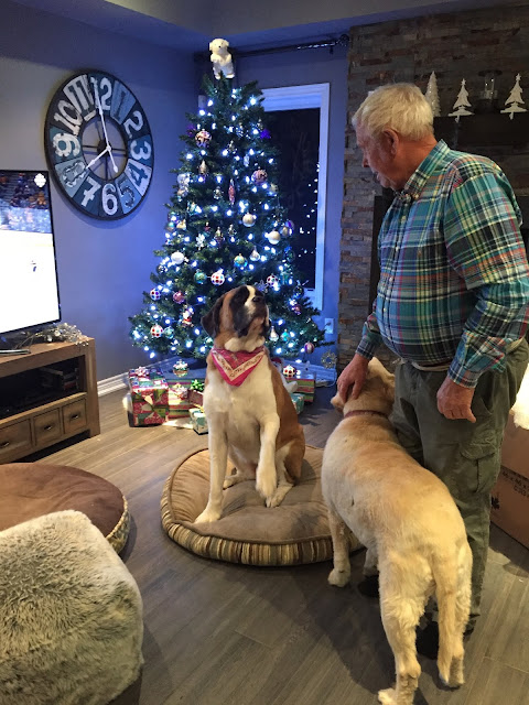 There are a few stuffed bears under the tree. These are our bears that dad brought home from Myrtle Beach - the money paid for the bears is donated to St. Jude's. Beth is donating them to the toy drive they are doing at work. Roko was in a funk all evening because he really wanted them.