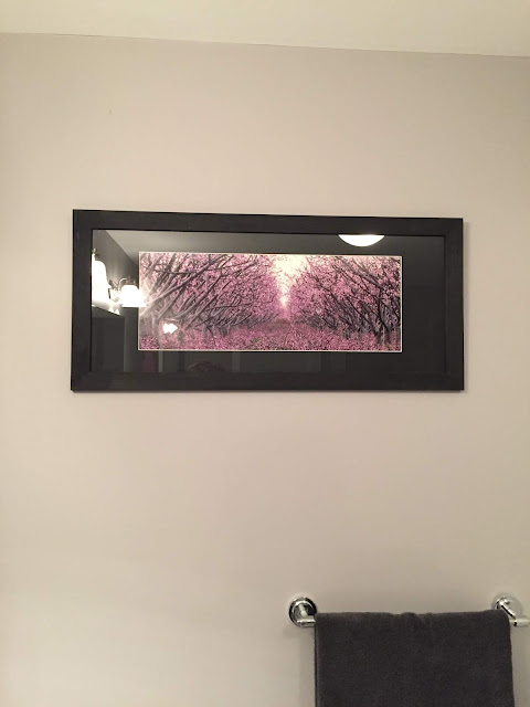 This is the picture that I bought at One of a Kind. These are plum trees in Niagara on the Lake. It adds some colour to my bathroom.