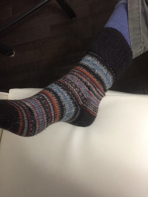 My dad loves handknit socks. And I don't knit socks so Jane knits him a pair every Christmas. He got this year's pair a bit early. Did I mention that he loves handknit socks? He said that if he had a few more pairs then he would be really happy 😉