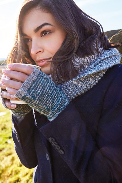 The kit has the pattern for Nether - a pair of fingerless gloves knit in cashmere.