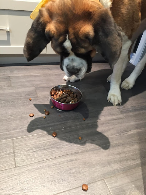 Lucy having dinner is always an adventure. She loves to throw her kernels everywhere. Then when she's ready she will pick them up. Sometimes.