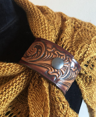 These gorgeous, one of a kind leather cuffs add a little something extra to that stunning shawl or cowl. The cuffs are handmade in British Columbia by the Knox Mountain Knit Co. and no two will ever be the same. The cuffs are made by upcycling leather belts.