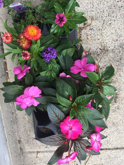 We bought plants for under the tree in the island as well as for the planter box on the shed. There are a few plants for the huge planter that Beth plants. I don't think we bought enough so there will be another trip (or two).