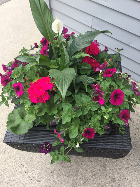 My planters at the door have pretty flowers.