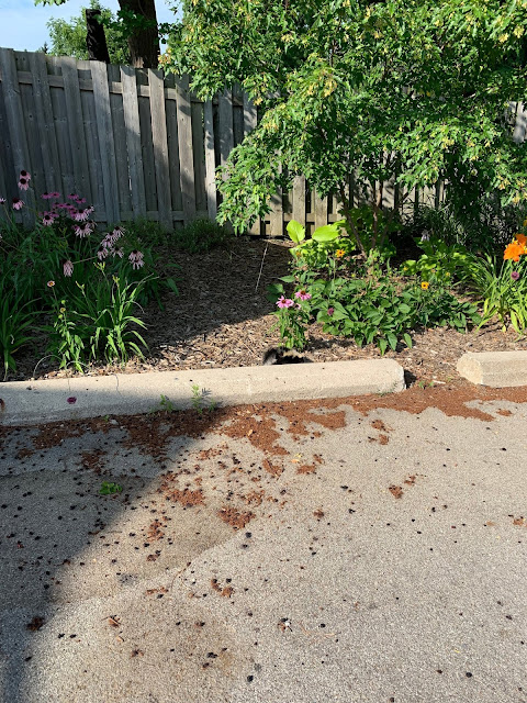 I've talked about the deer that like to hang out in my garden. I haven't seen any signs of them lately but there was another friend yesterday. On two different occasions I saw a baby skunk.