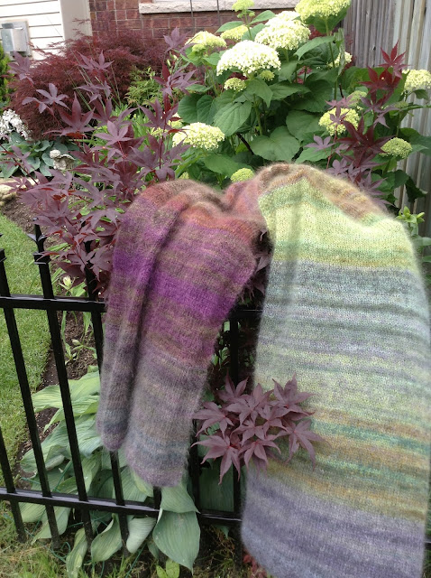 I was up early and finished the knitting (and sewing in ends) on my Color Play Mohair Wrap.