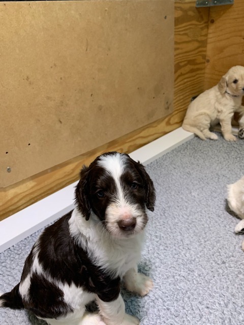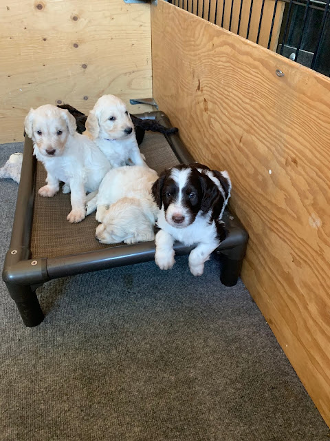 Dad and Beth left early this morning and they chose Boscoe. Beth says he is full of devilment. My dad said 'he is a bugger'. Perfect. The family who came in after dad and Beth (parents and 4 kids) had also been watching puppy cam and Boscoe was their choice as well. They chose the black and white girl.