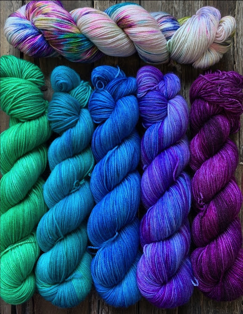 Dream in Colour has dyed special colours of Smooshy Cashmere for Breathe and Hope. We will be making kits and you will get one skein of the multi with one skein of a solid. All solids look amazing with the multi - choosing is going to be hard.