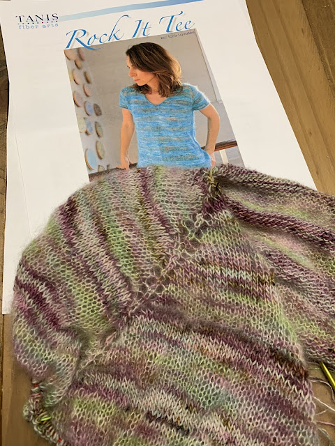 I brought out my Rock it Tee. You can purchase the pattern on Ravelry. I am using Hedgehog Skinny Singles and Kidsilk Lace.