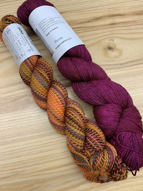 Of course I put together combinations. For these I used Dyed in the Wool and Hedgehog Sock. You need one skein of each for the cowl.