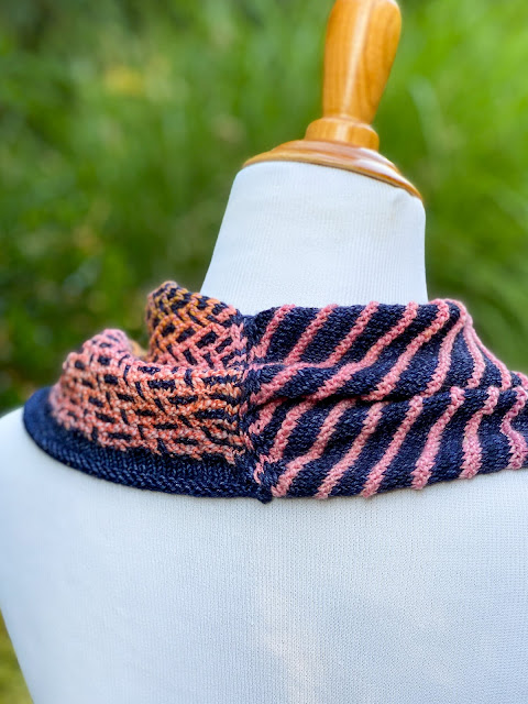 Strawberry Mountain is a quick and easy cowl with simple striping and textured colorwork.