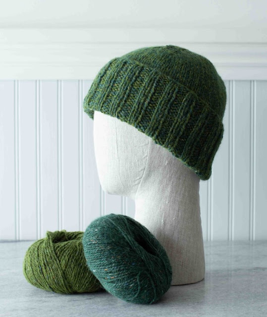 For this Boyfriend Watch Cap, we marled two colors of Rowan Felted Tweed together. One of our favorite yarns of all time, Felted Tweed is on the finer side of a DK-weight. It blends merino wool for softness and spring, with alpaca and viscose for drape, luster, and subtle stitch definition. And there are so many colors to play with!You can purchase the pattern on Churchmouse’s website.