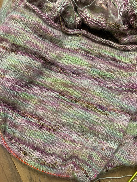 I have 6 rows to go and then I am separating the sleeves from the body. My sweater shows why you need to block your work when finished knitting. The stitches aren’t lying very flat right now but a bath in Soak and they will look great.