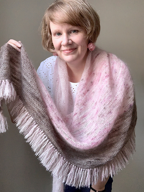 This pattern works exceptionally well with almost any mohair lace yarn. From delightfully speckled hand-dyed skeins to commercial balls of knit-worthy floof, as long as you have sufficient yardage, the only limitation is your imagination!