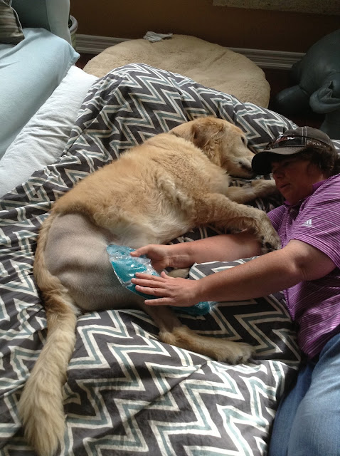Mr. Roko has his leg massaged and iced four times a day. Do you think he likes the ice? Mr. Melo has moved back in. I'm not sure that he is happy being here. He isn't allowed to run with Roko. He can't wrestle with Roko. And there is a mattress in our living room.