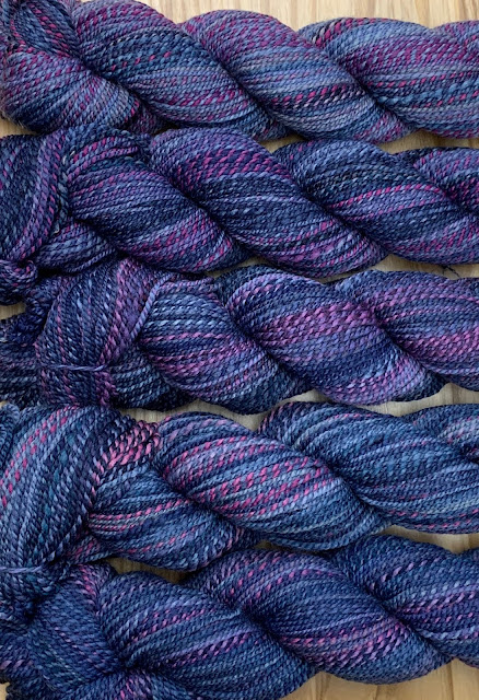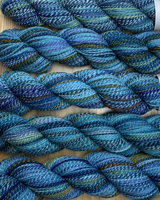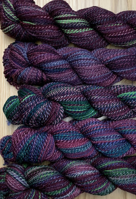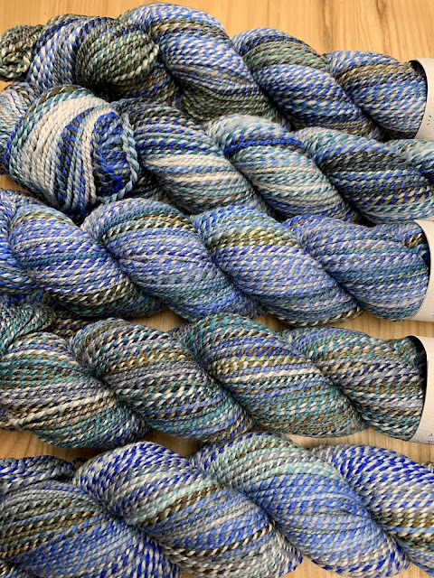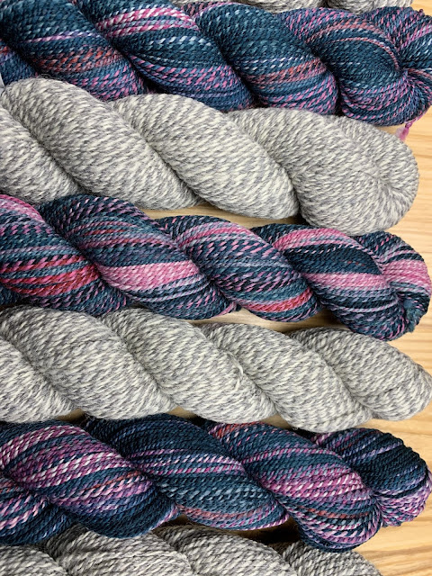 Churchmouse used 2 skeins of tosh merino light and 2 skeins of Shibui Silk Cloud for their sample. The colour is Lovegrass.