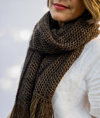 We’ve resized our Easy Eyelet Wrap with a free adaptation to make sure we took full advantage of both Tosh Merino Light and Silk Cloud’s yardage. We kept the scarf narrow to gain a lavish length! And with the extra yardage of Tosh Merino Light, we added an abundance of fringe.