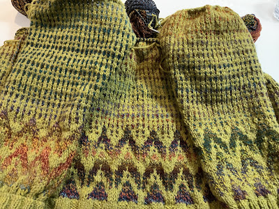My Spark Cardi is growing. Both sleeves are finished and now I need to knit another 2” on the body. Then joining.