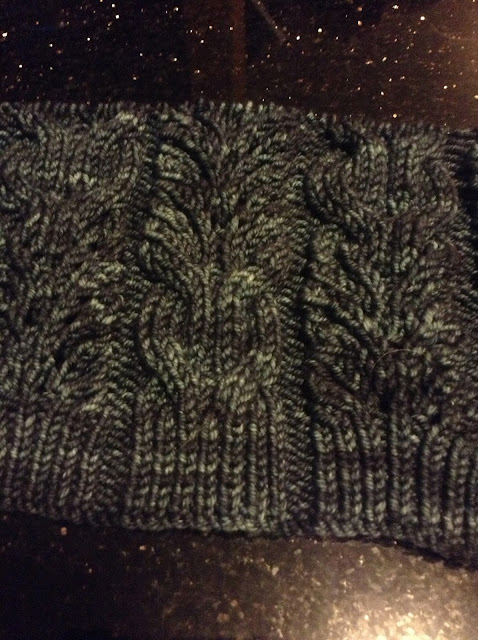 I'm back to working on Wheaten. Sorry about the picture - the colour is off but you can see how the pattern is working. I've finished 1 pattern repeat (36 rows) and it measures about 9". 10 more pattern repeats to go.