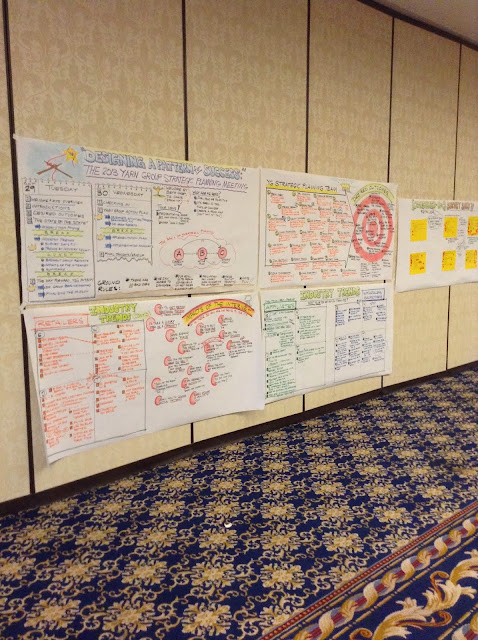 Not to name drop but I got to sit with some cool people today. Some I have known for years (Barry Klein-Trendsetter, Beth Casey-Lorna's Laces, Joel Woodcock-Lantern Moon, Stacy Charles-Tahki Stacy Charles, Betsy Parry-Classic Elite) and some new people who are very big players in the yarn industry. Laura from Jimmy Beans. Sherri from The Loopy Ewe. Craig from Loops.