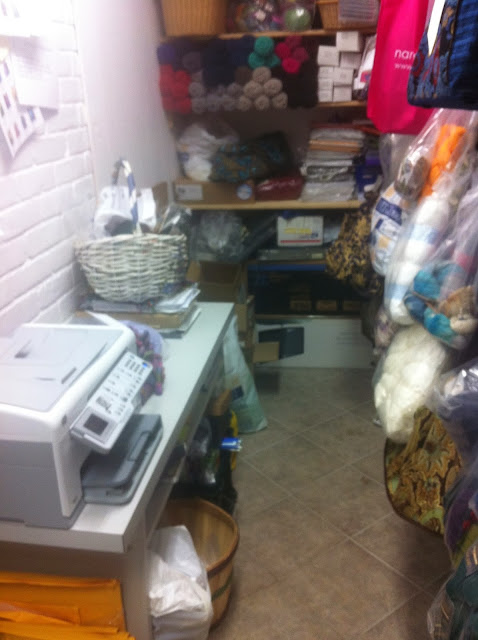 I came to work this morning to find a surprise from Cathy and Kim. They tidied (okay, did a major overhaul) behind the cash desk. Do you have that drawer in your kitchen or a closet where you open it and just throw things in? That's what it was looking like back here. Now there is room to walk.
