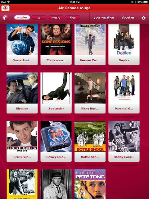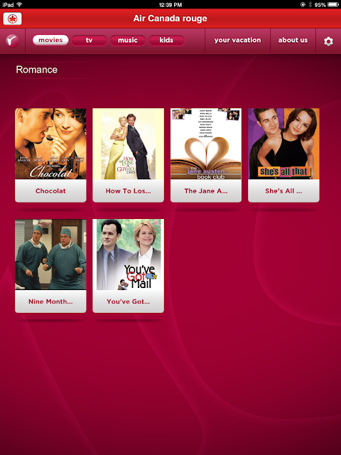 The flight home last night was very uneventful. (Before the flight was really good though. I won $55 playing a slot machine in the airport.) I flew on Air Canada Rouge. This is a new branch of Air Canada. The flight crew were all very young and very pleasant. The planes do not have TV screens in the back of the seats like Air Canada has. Before you fly you need to download the Air Canada app on your iPad. Once you are allowed to use electronic devices the app works and you can choose from many different movies and TV shows.