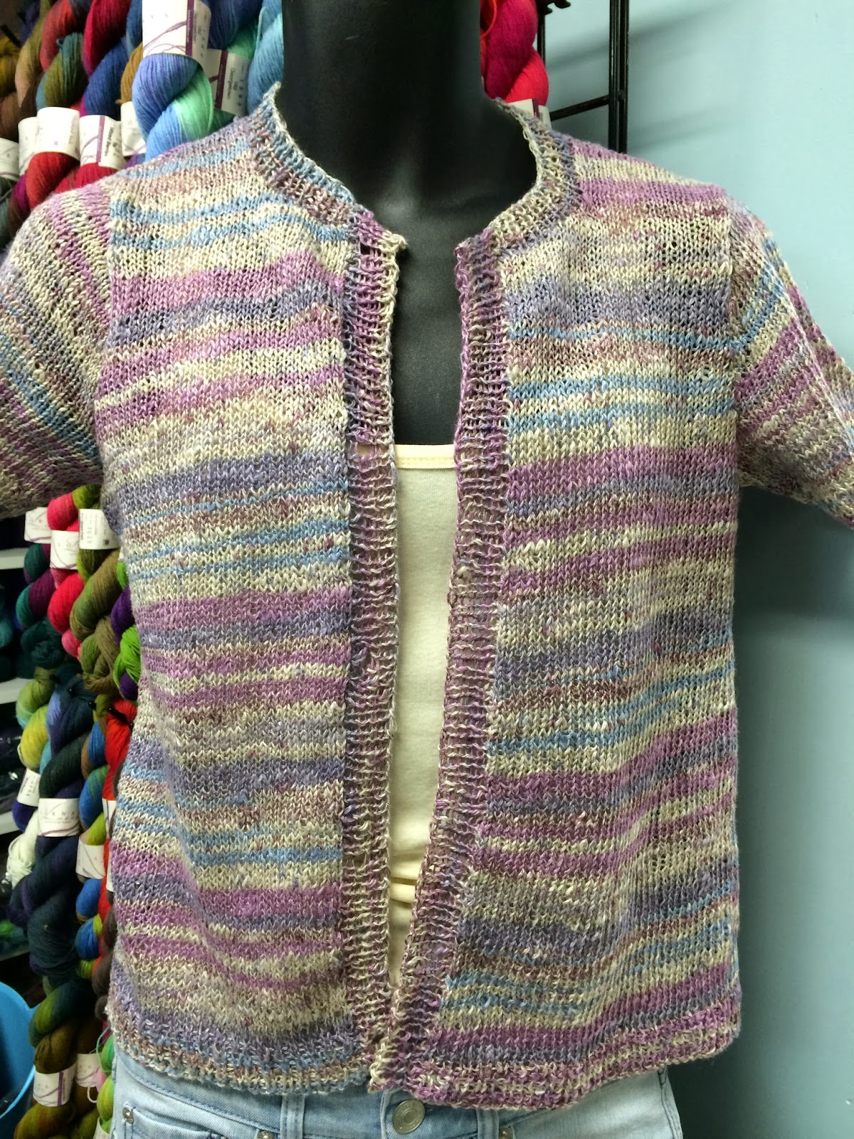 An easy-to-knit cardigan with short fitted sleeves.