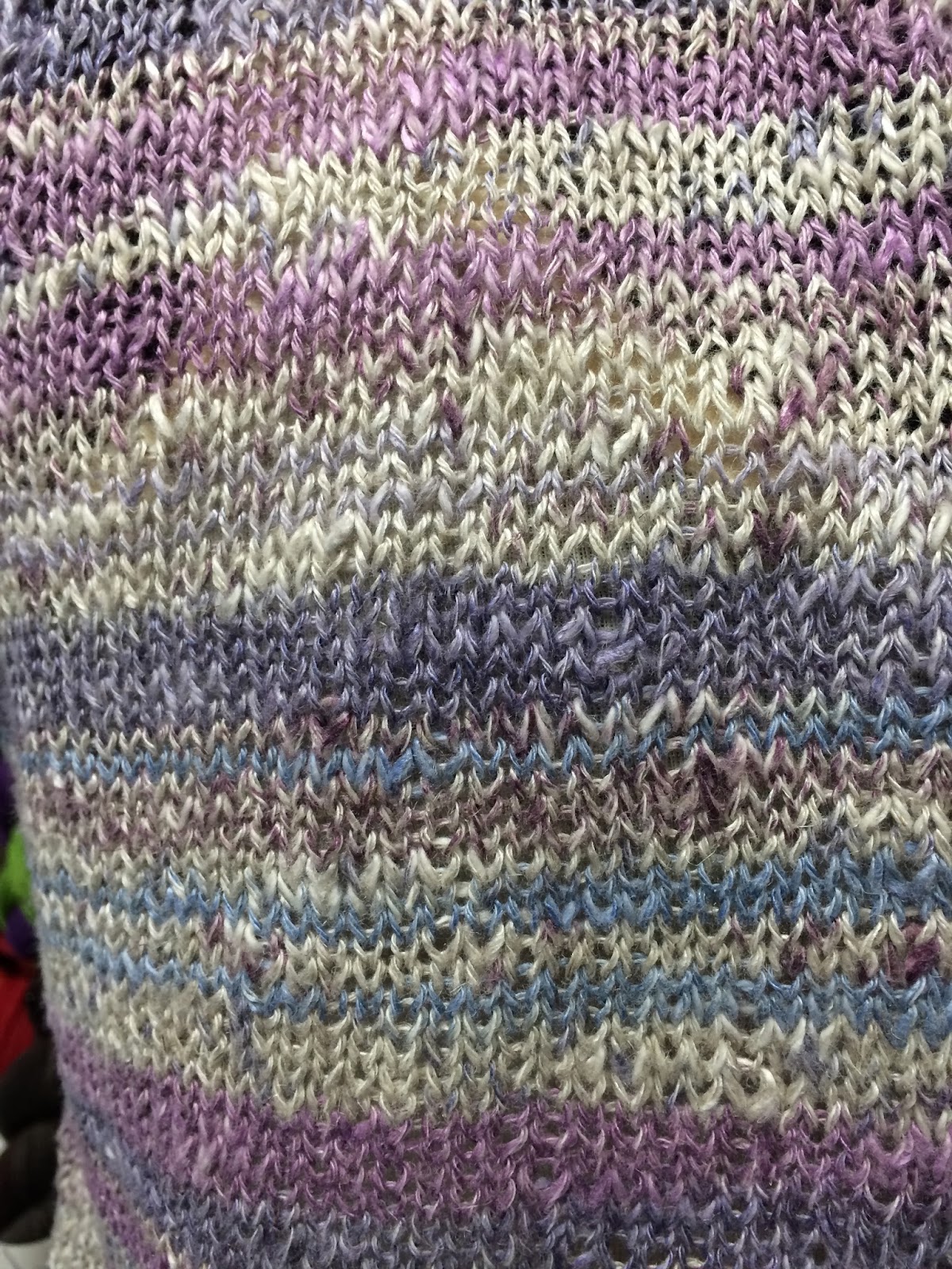 My Olympic sweater is growing. I was up at 3:30am to watch Slopestyles. Then back for a short nap and at work by 9:30. It's been busy in the store which is a good thing but there hasn't been any knitting. I think that I need to sleep after work though. Men's downhill comes on at 2am. I don't like to see events after I know the results. I want to see them live - it's a thing in our family. We were all up this morning to watch the snowboarding.