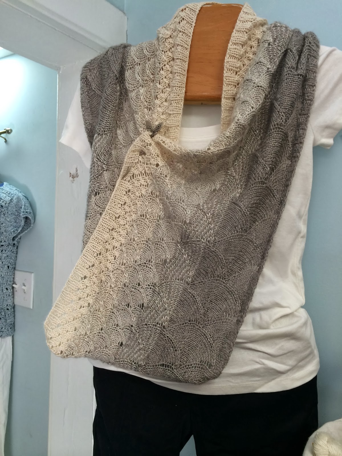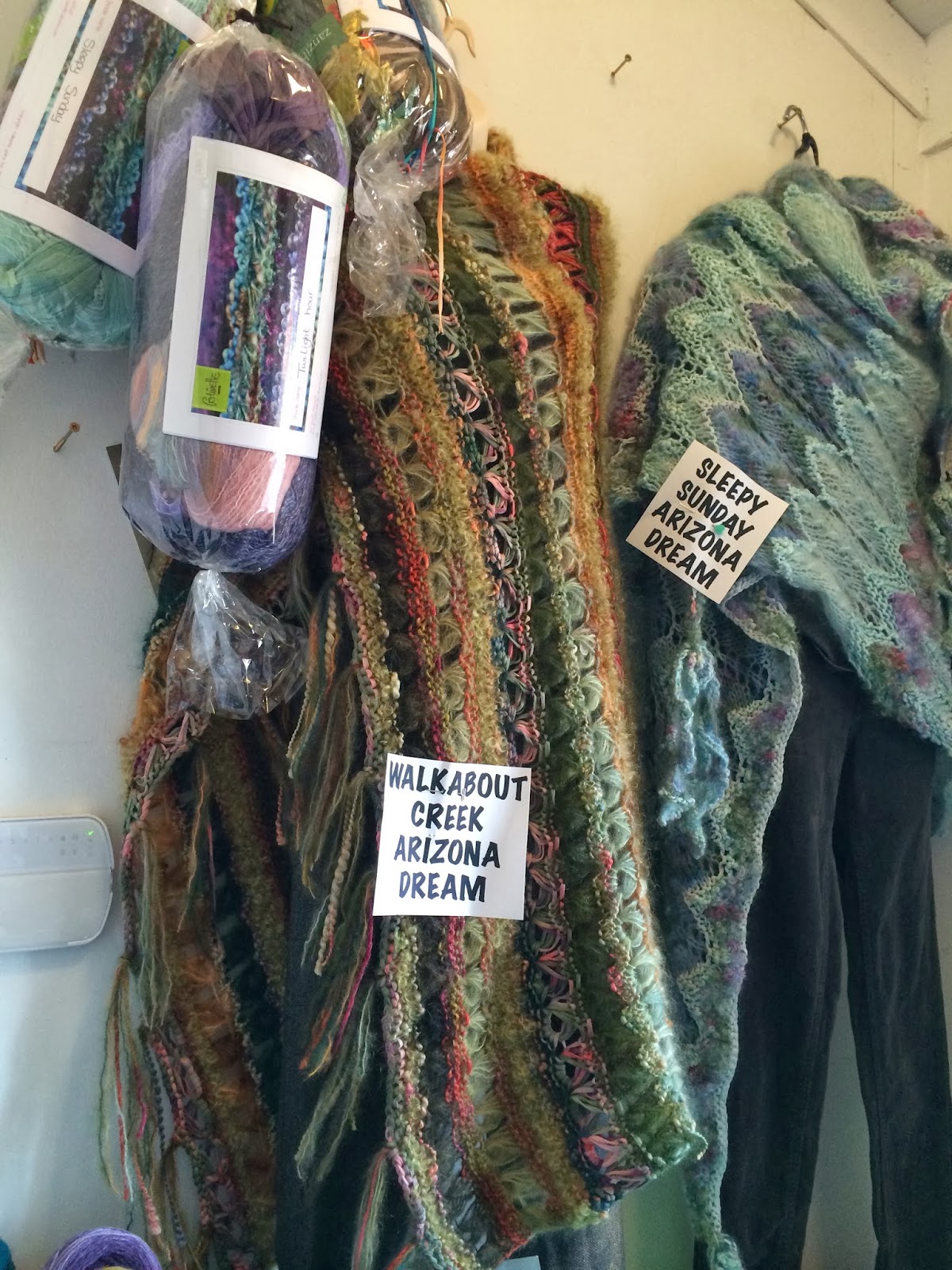 The Colinette Arizona Dream throws moved as well. They are now at the front door and our friends are wearing them like shawls. They look great!