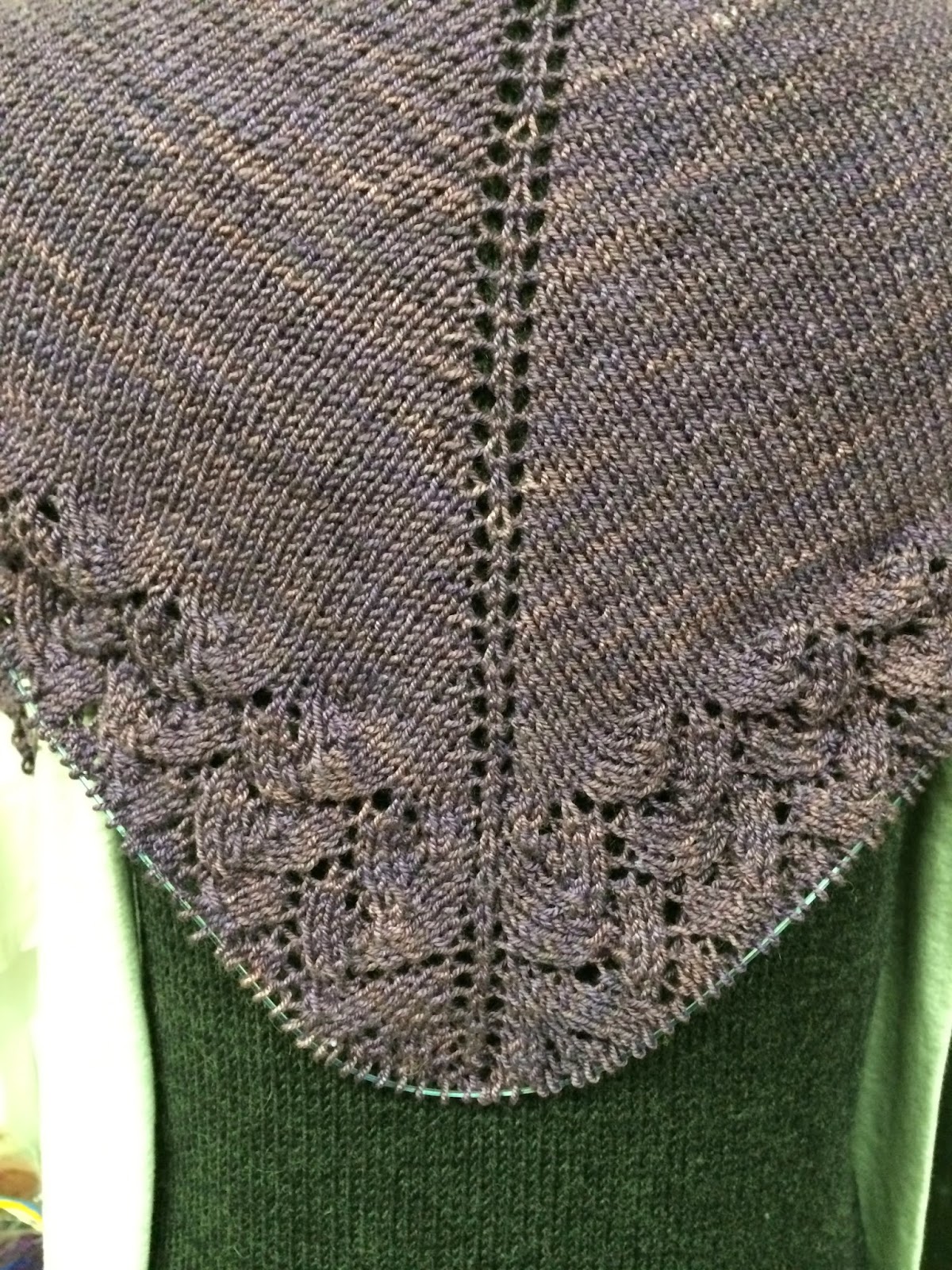 For some reason I think that I knit lace quicker than straight stocking stitch. Maybe I'm nuts but it seems that Ishbel is growing quickly.