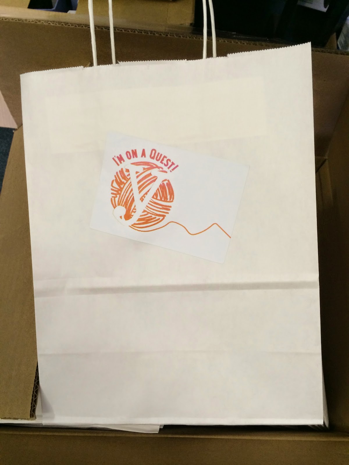 I needed bags for our Quest at TNNA. My hope was orange bags but when I got to the bag store I realized that they were too small. What to do? Take bigger bags in white. I came home, stopping at Staples to buy labels on the way and started printing.