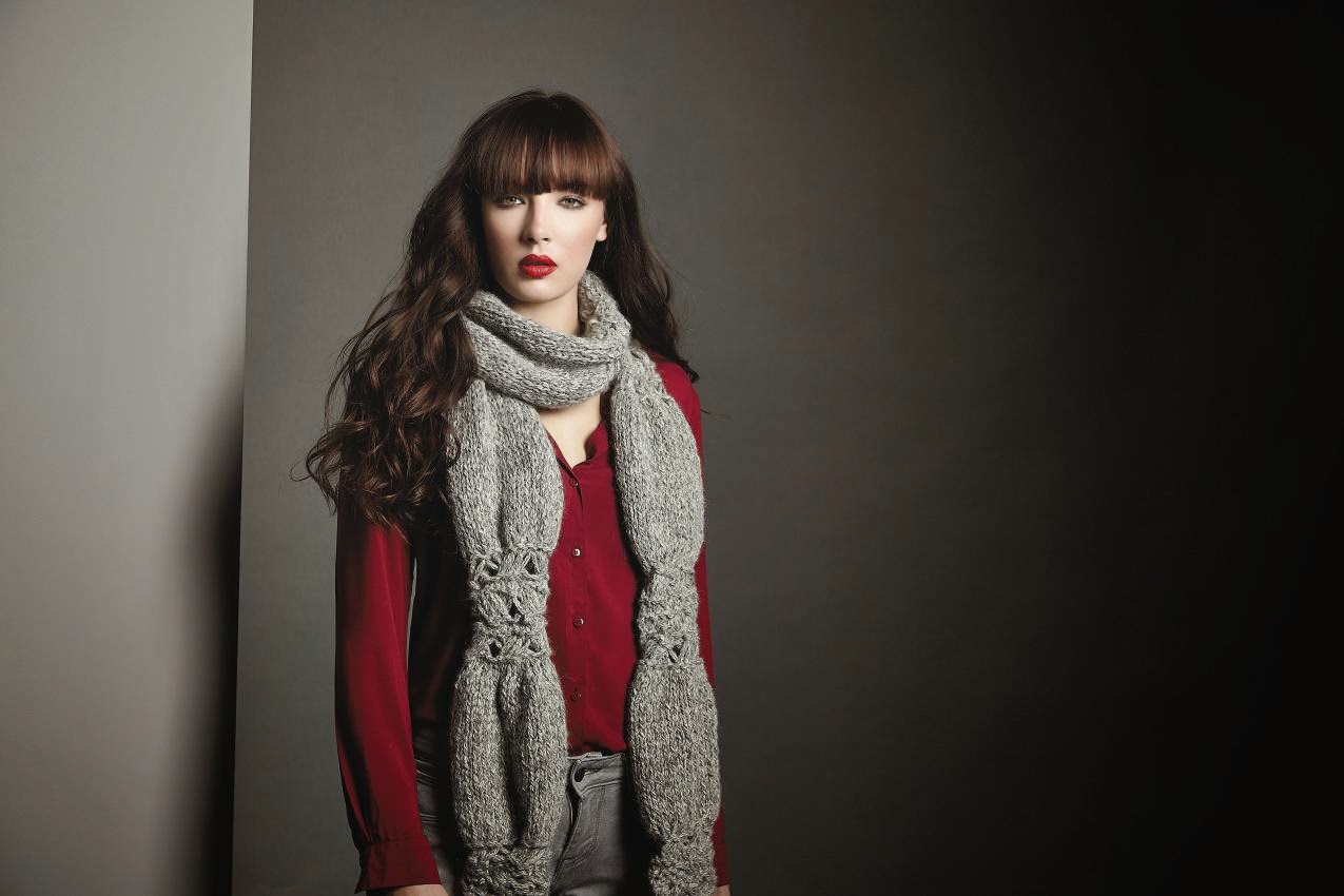 This collection showcases a selection of our chunkier yarns including, Thick ‘n’ thin, Tumble, Alpaca Chunky and our new ‘Fur’ yarn, making these accessories super quick to knit. The 15 designs include, hats, scarves, cowls, capes and interesting neck pieces from our in house design team.
