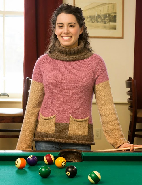 Chateau and Chalet combine in this easy to knit colorblock pullover with a slight A-line shape. The turtleneck is optional and a round crew neck can be worked instead.See all the patterns in the book...