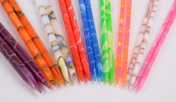 Marblz, the latest from Knitter's Pride, get their name from the marble like coloration of the material. These beautiful acrylic needles have a different color depending on what size you order.We have ordered a few sizes of interchangeable tips to try and they should be here the middle of September.