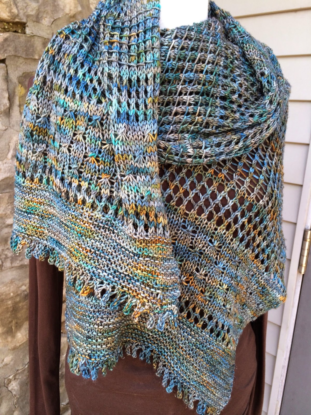 Of course I did some searching on Ravelry. Roxanne (from Zen Yarn Garden) knit a great shawl. She said that I could use her pictures as long as I gave credit to Gail Zucker - she took the awesome photos.