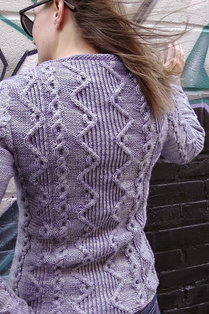 Reminiscent of the switchbacks on Lombard Street in San Francisco the cables on this cardigan zig zag back and forth.
