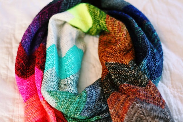 What a great way to play with colour. There could be colours in the scarf that you might not like but in the whole scheme of things they look great. However, there is no reason why you can't take a colour or two out and double up on the ones that you like.