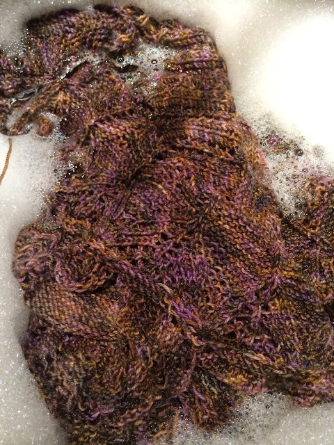 After those chores I had to decide which project I wanted to resurrect. Small problem. It was after 9pm. Is that a good hour to be bringing out something and figuring out where I am in the pattern? I had a few Offhand Design bags to go through before I found Ley Lines #2. Can it be finished in time for TNNA too???