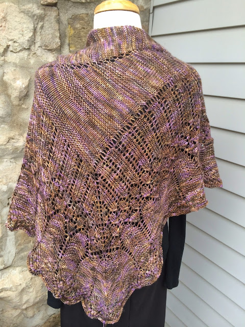 Knit this pretty ladies cardigan from Lace Knits. Designed by Ann Kingstone using our lovely softly spun yarn Kid Classic (lambswool and mohair), this round neck cardigan has a striking flower motif and contrasting garter stitch edgings.Follow Your Arrow dried a bit quicker than I thought it would. So fast that I didn't get the points pinned out. It will come home for the weekend and I'll re-Soak it. The big problem is that my blocking wires and pins are packed somewhere. I'll be scrounging through the basement tonight.