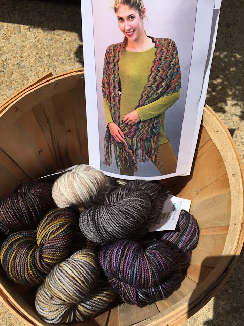 Mr. Canada Post brought in a huge box from Prism Yarns this morning and I'm repacking some to send to Lynda. This new shawl is called the Eccentric Chevron Wrap. It is knit in 6 skeins of Merino Mia-100% super wash merino wool. The yarn is hand dyed by Laura Bryant and the colours are awesome. This colourway is called Neutrals.